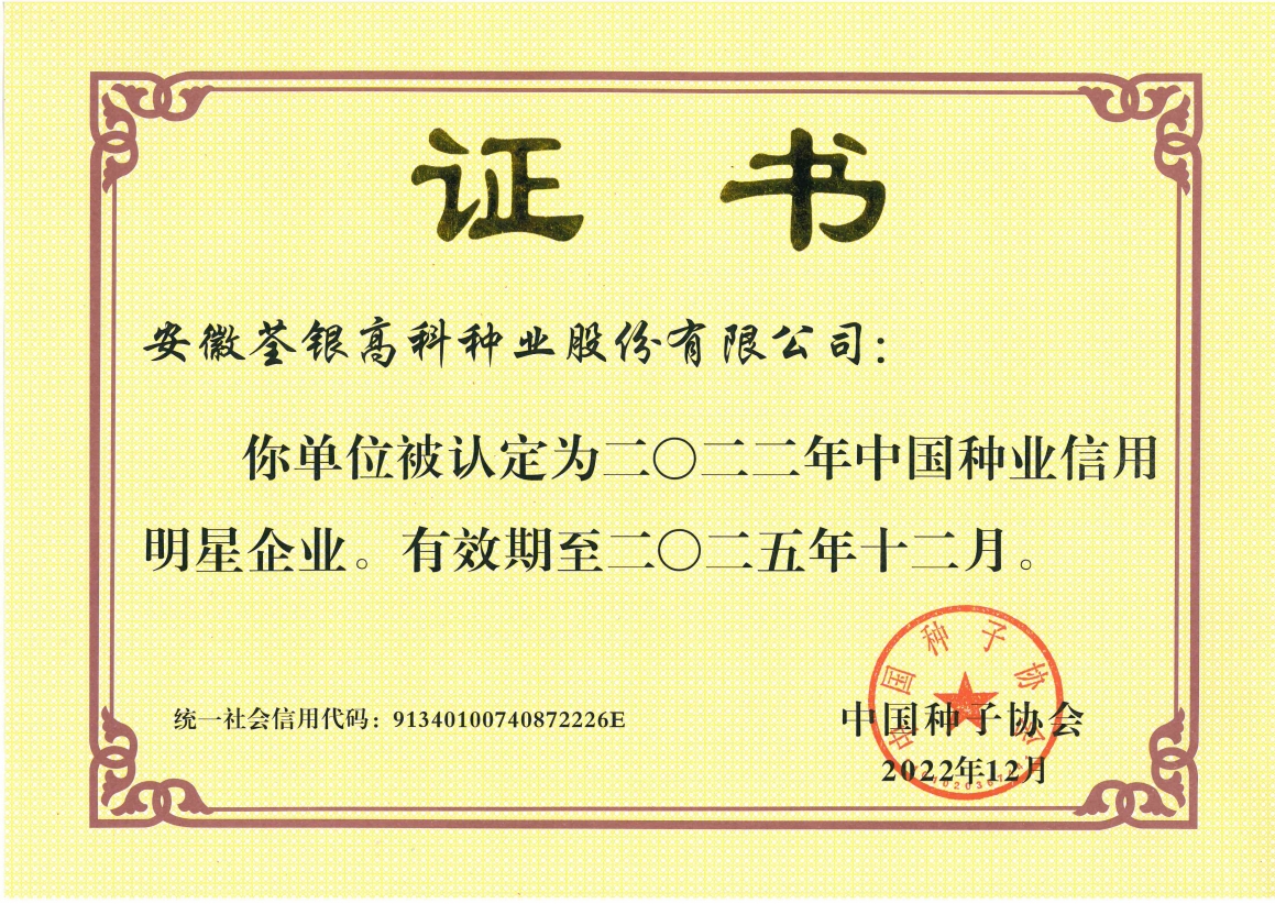 安徽荃銀高科種業(yè)股份有限公司是一家“以種業(yè)為核心、農(nóng)業(yè)服務(wù)為延伸、探索和創(chuàng)新農(nóng)業(yè)多元化發(fā)展”的現(xiàn)代高科技種業(yè)上市公司,證券代碼:300087。公司注冊資金9.47億元,系“中國種業(yè)領(lǐng)軍企業(yè)、農(nóng)業(yè)產(chǎn)業(yè)化國家重點龍頭企業(yè)、國家高新技術(shù)企業(yè)、農(nóng)業(yè)部首批農(nóng)作物種子育繁推一體化企業(yè)、中國種業(yè)信用明星企業(yè)"。在國內(nèi)控股子公司20多家,在國外設(shè)立分支機(jī)構(gòu)4家,良種銷售至全國20多個省(市、區(qū)),出口覆蓋20多個國家與地區(qū),種業(yè)綜合實力、雜交水稻研發(fā)、推廣及海外業(yè)務(wù)規(guī)模均居全國種子企業(yè)前2位。